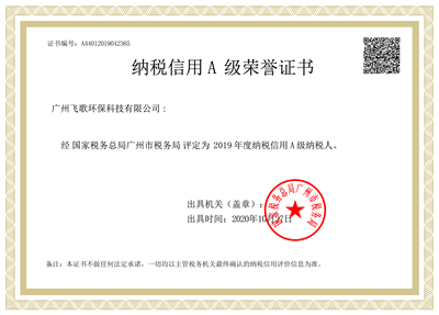 納稅信用A級榮譽證書