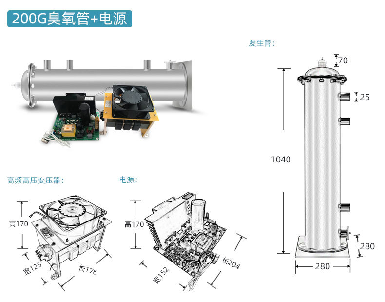 臭氧管尺寸L*W*H