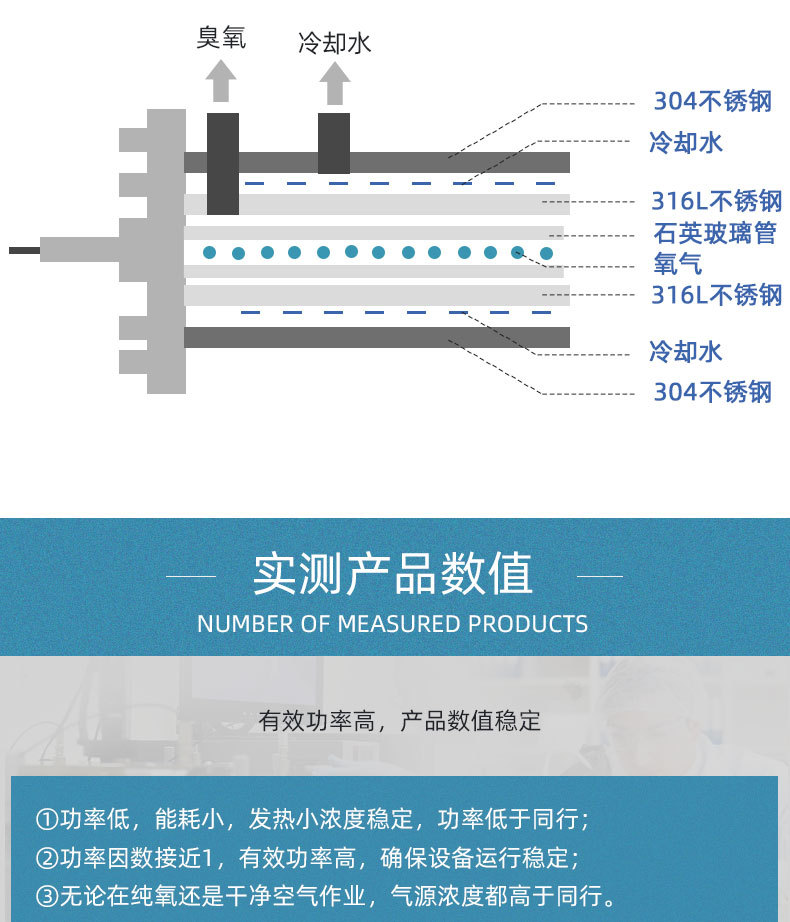 采用多根石英管放電,臭氧濃度更高更穩(wěn)定