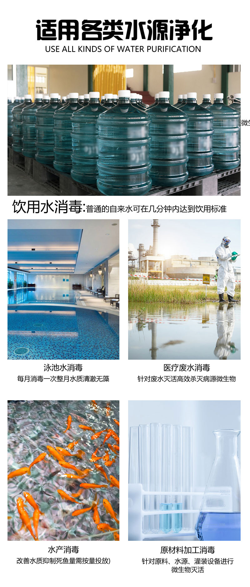 產(chǎn)品廣泛應(yīng)用于水產(chǎn)養(yǎng)殖,工廠污水處理,純凈水/自來(lái)水/飲用水凈化,車間廢氣處理,醫(yī)用污水處理,游泳池凈化,畜牧水產(chǎn)養(yǎng)殖,農(nóng)業(yè)灌溉