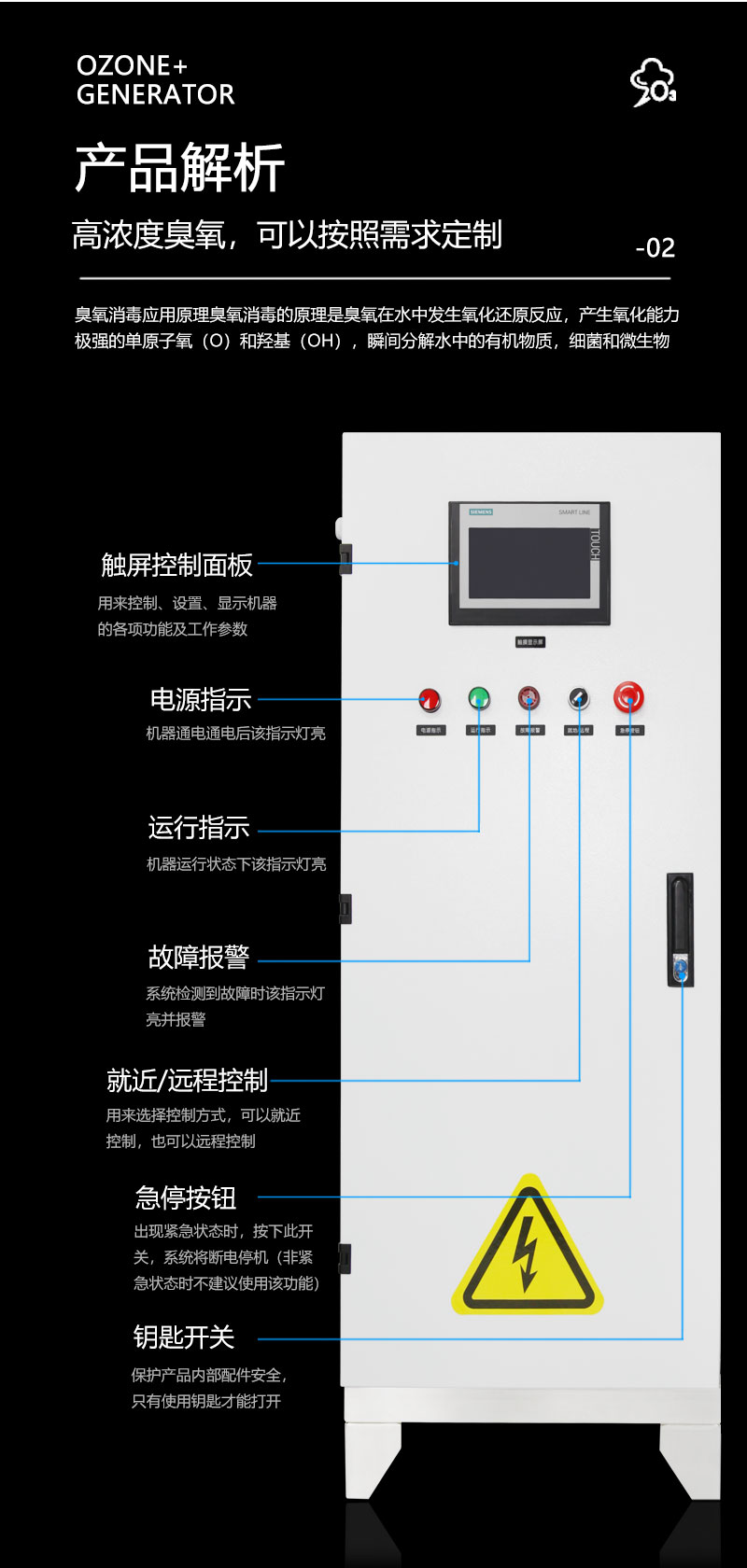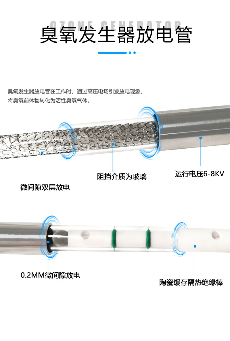 ◆自主研發(fā)石英管放電體臭氧濃度高、穩(wěn)定,耐熱性、耐壓性能優(yōu)良,維護方便