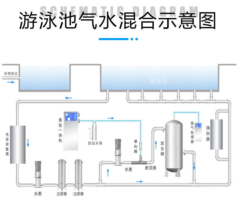 ◆泳池、庫房、小區(qū)供水等用臭氧水殺菌消毒