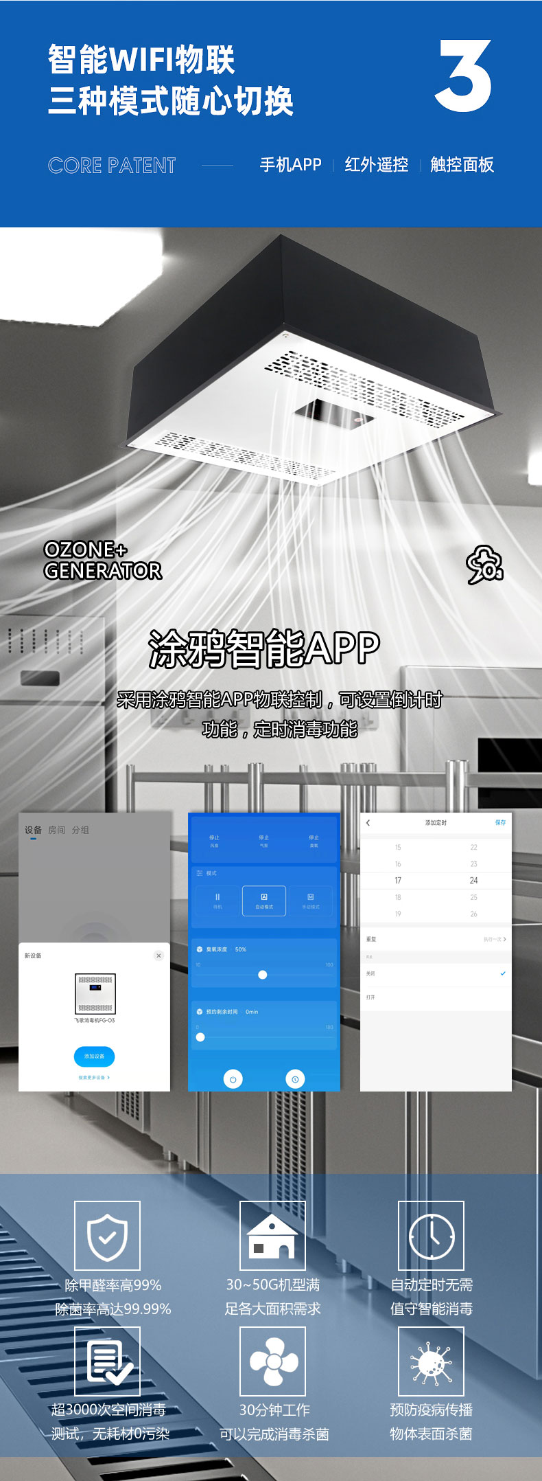 適用于對室內(nèi)環(huán)境空氣和特定作業(yè)空間的消毒凈化。如辦公室場所、醫(yī)院、學校、會議室、檔案室、娛樂場所」賓館等;食品、飲料、醫(yī)藥等行業(yè)的生產(chǎn)車間、冷庫、更衣室和其他無HVAC潔凈區(qū)的空間消毒滅菌。