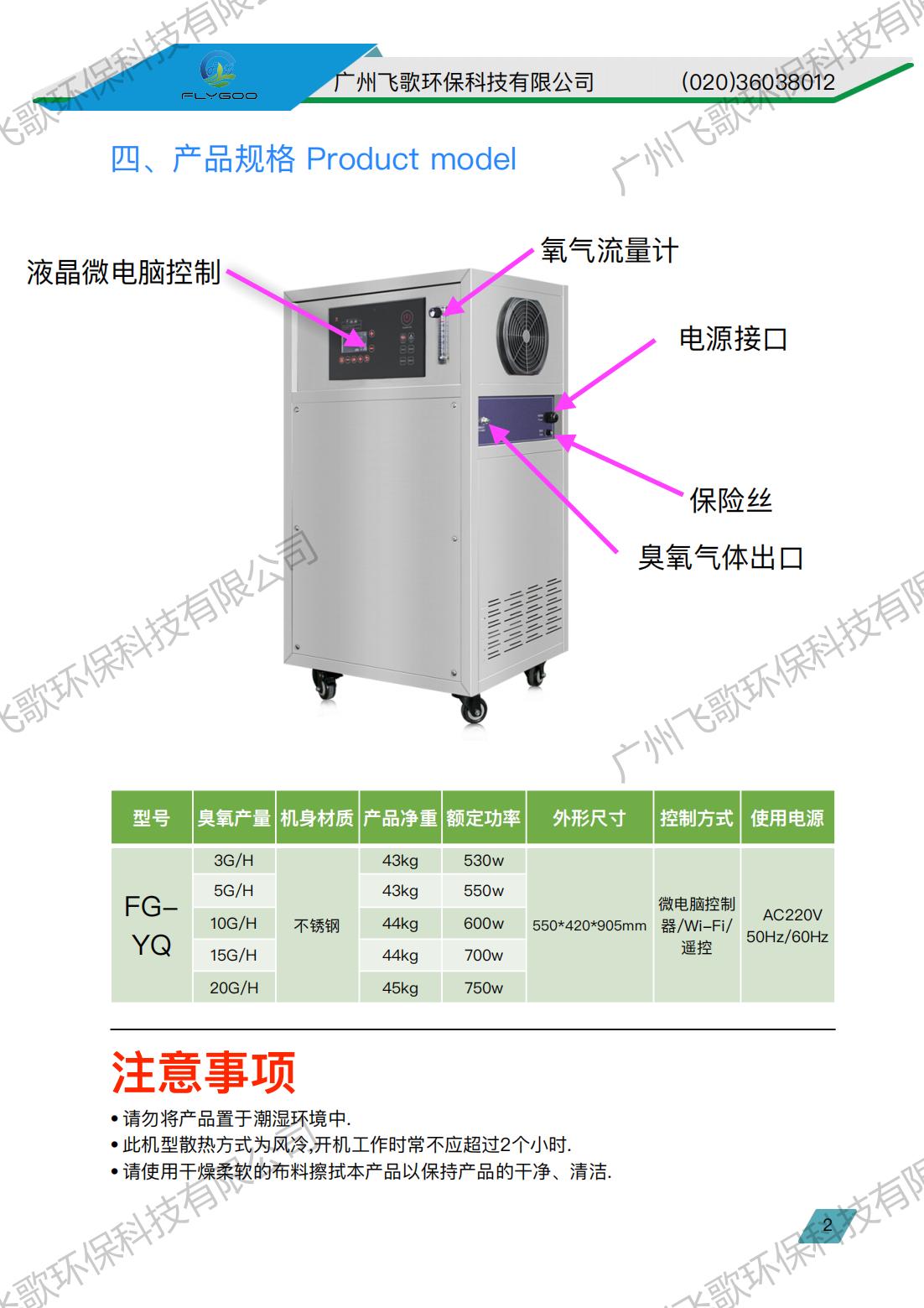 飛歌風(fēng)冷FG-YQ-3-20氧氣源臭氧發(fā)生器產(chǎn)品使用說(shuō)明書(shū)